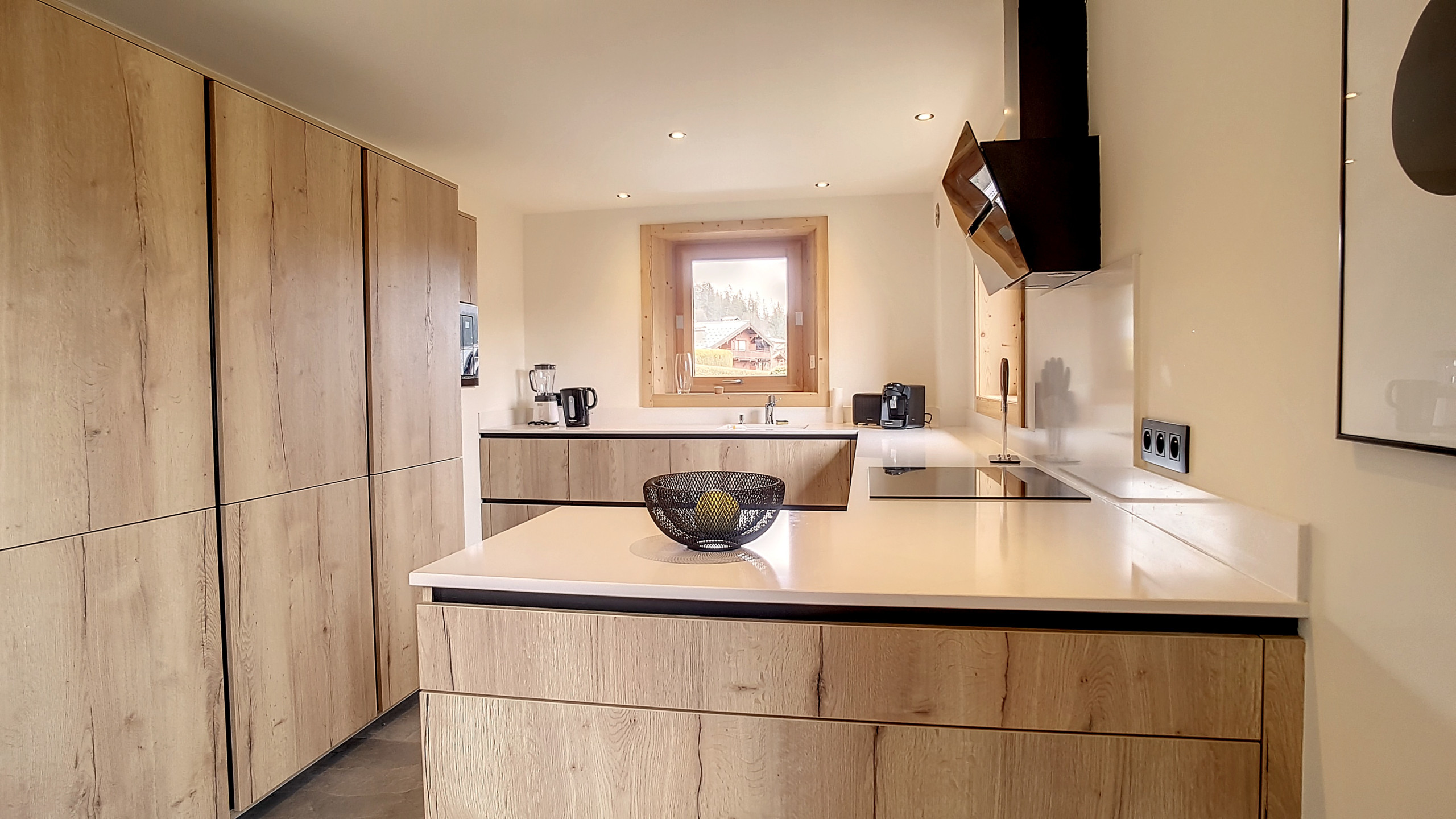 - Fully equipped open kitchen (oven, dishwasher, microwave, induction hob...).