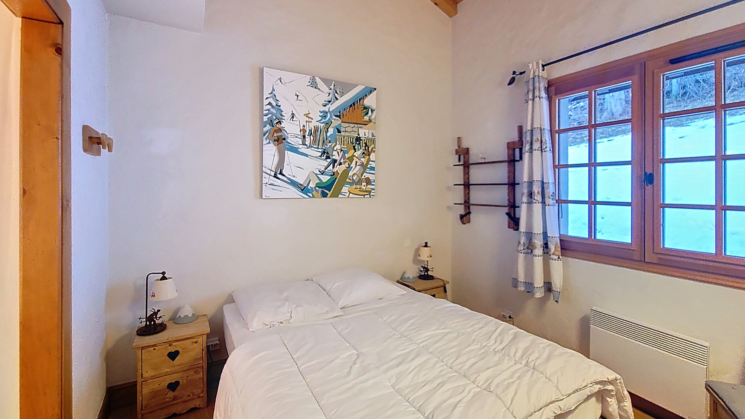 - Une seconde chambre avec lits superposés (80 x 200), placard et bureau